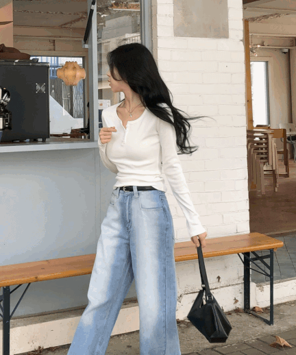 [핏보장✨/버튼/골지긴팔티] 4color 슬림핏 헨리 U넥 스판 y2k 쫀쫀 기본 긴팔 티셔츠 베이/허리잘록/볼륨핏/데일리룩/이너티