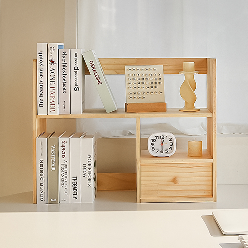 2단 원목 책꽂이 전면 책상 정리 선반 낮은 책장 정리함 미니 서랍장 꾸미기 인테리어 서랍 수납 틈새 북엔드 잡지꽂이 파일꽂이 우드
