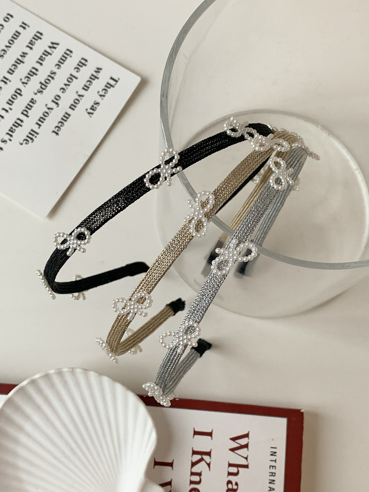 진주리본장식 얇은 머리띠 헤어밴드 3color