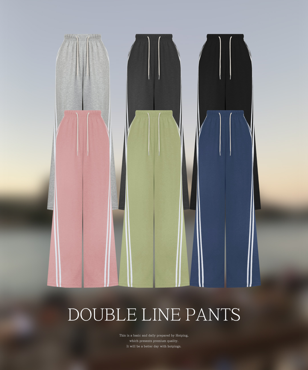 [힙무드😎][트랙팬츠] 히어로 밴딩 사선 더블라인 롱 와이드팬츠 (44~99) (빅사이즈팬츠-트레이닝팬츠-체형커버-간절기바지-스판-스트링-홈웨어룩-운동룩-마실룩-허리밴딩)