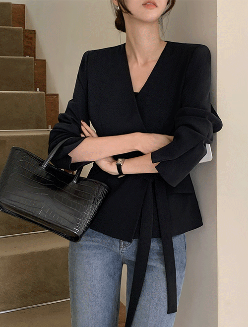 [4천장돌파/ 고급진한벌✨/자연스러운우아함/셋업코디강추][made] 알레나 페미닌 브이 스트랩 자켓 (신상/베스트/가을/간절기/자켓/하객룩/격식룩/오피스룩/출근룩/데이트룩)