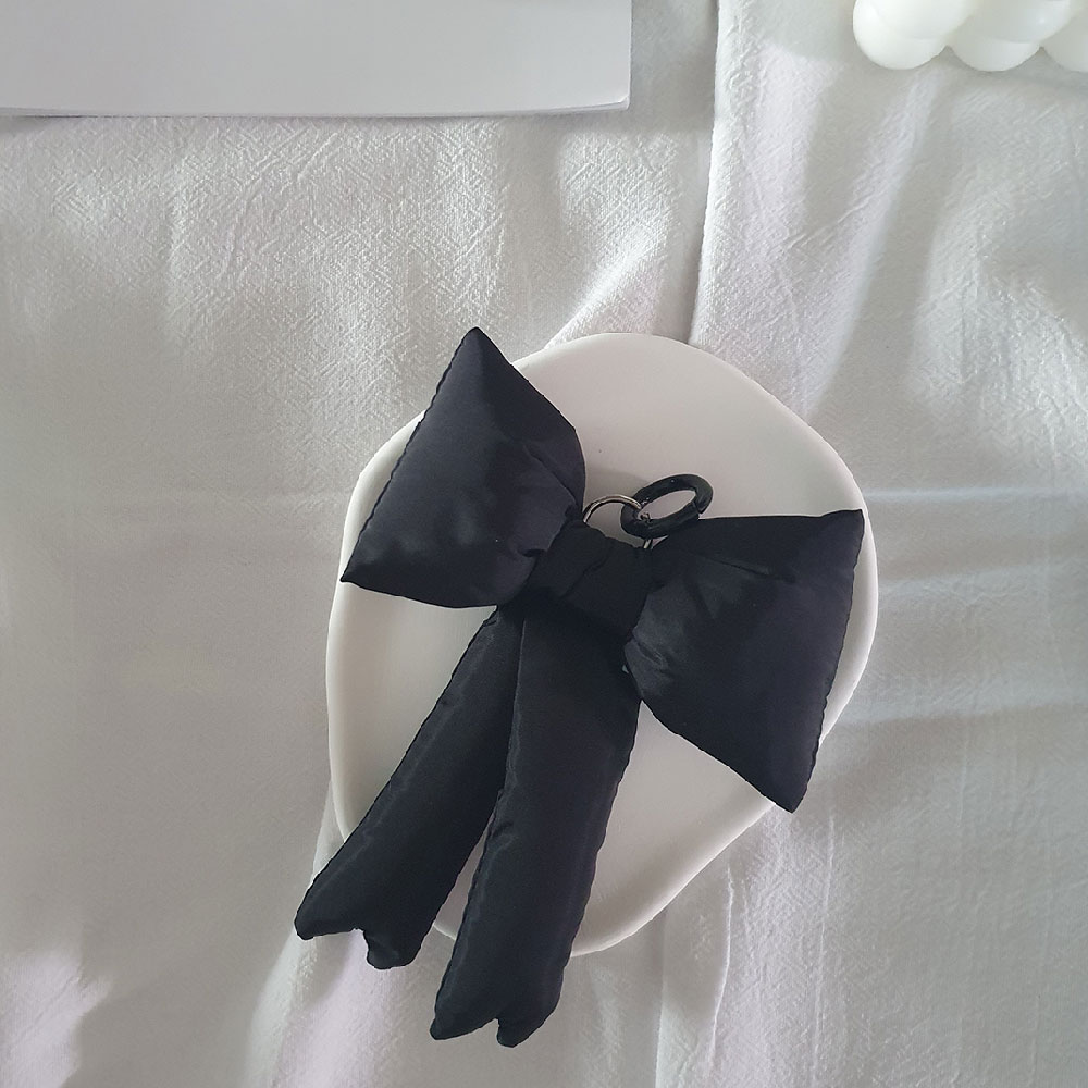 무드바이브 블랙 패딩 쿠션 리본 키링 발레코어룩 가방 열쇠고리 친구 우정 선물 커플템 키홀더 차키 악세사리 가방꾸미기