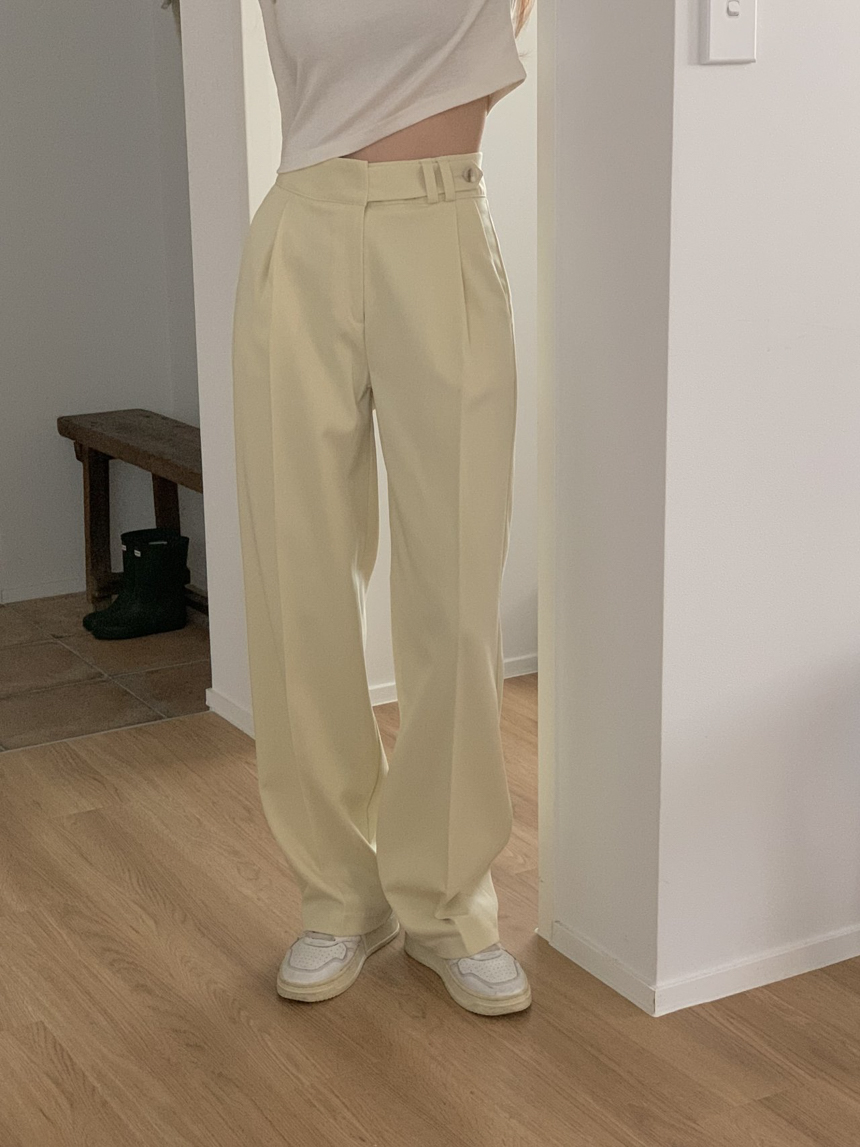 [🤎루즈핏]사이드 버튼 루즈 슬랙스 , 가을 봄 와이드 핀턱 일자 옆벨트 간절기 정장 원턱 단추 기본 심플 롱 바지 팬츠 아이보리 베이지 회색 네이비 블랙