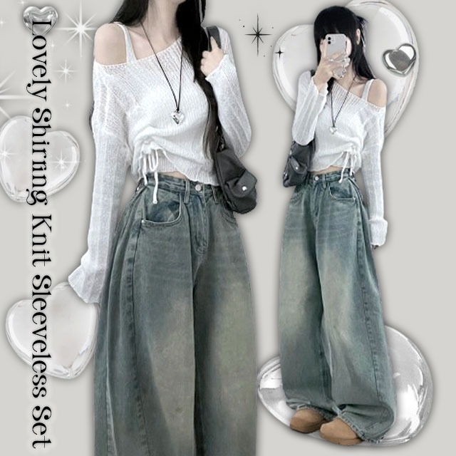 [나시+니트set/러블리]원셔링크롭긴팔니트나시세트(5color)
