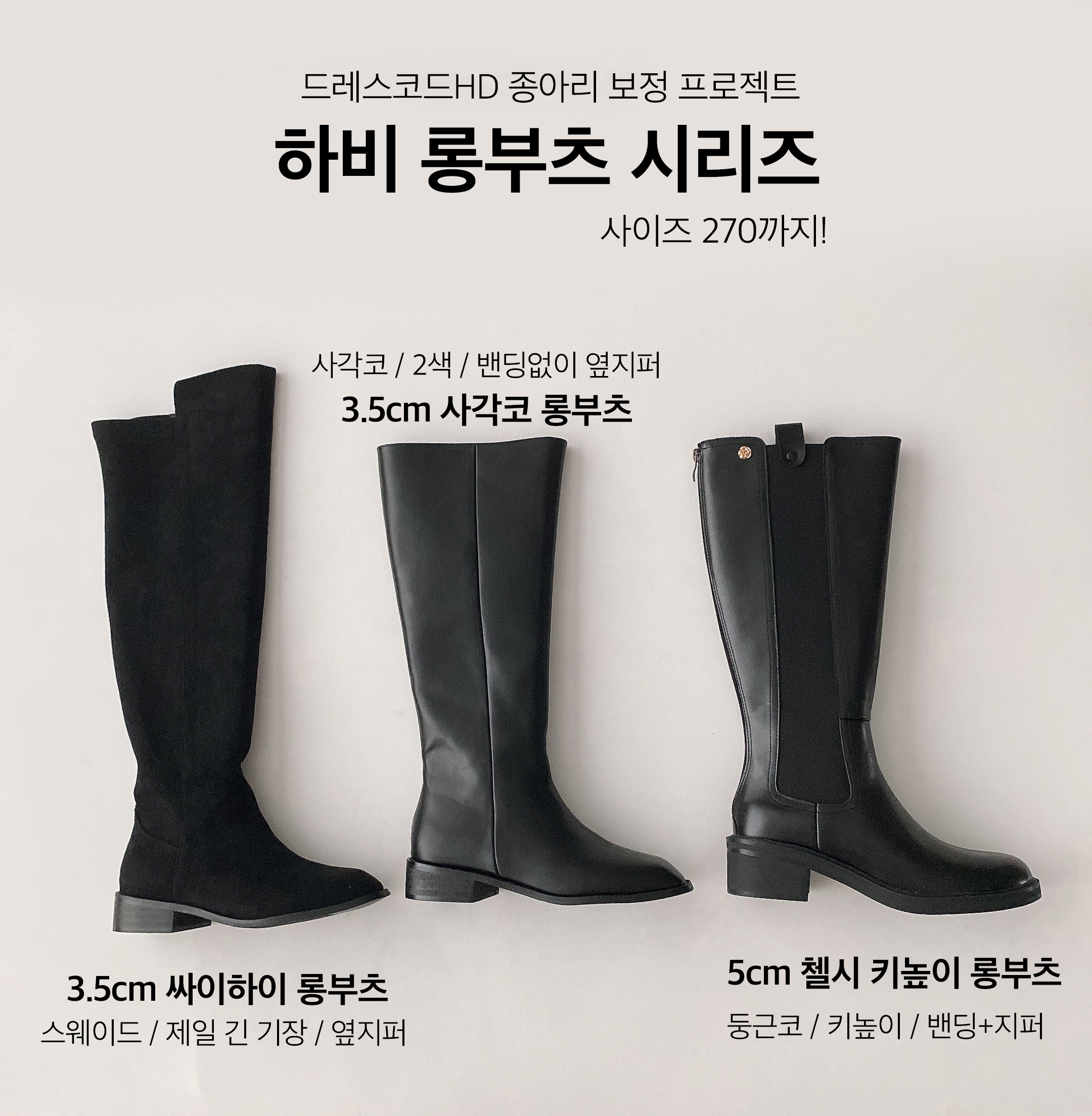 [~270] 사각코 심플 하비롱부츠 (빅사이즈 니하이 롱부츠 통넓은롱부츠 255 260 265 270)