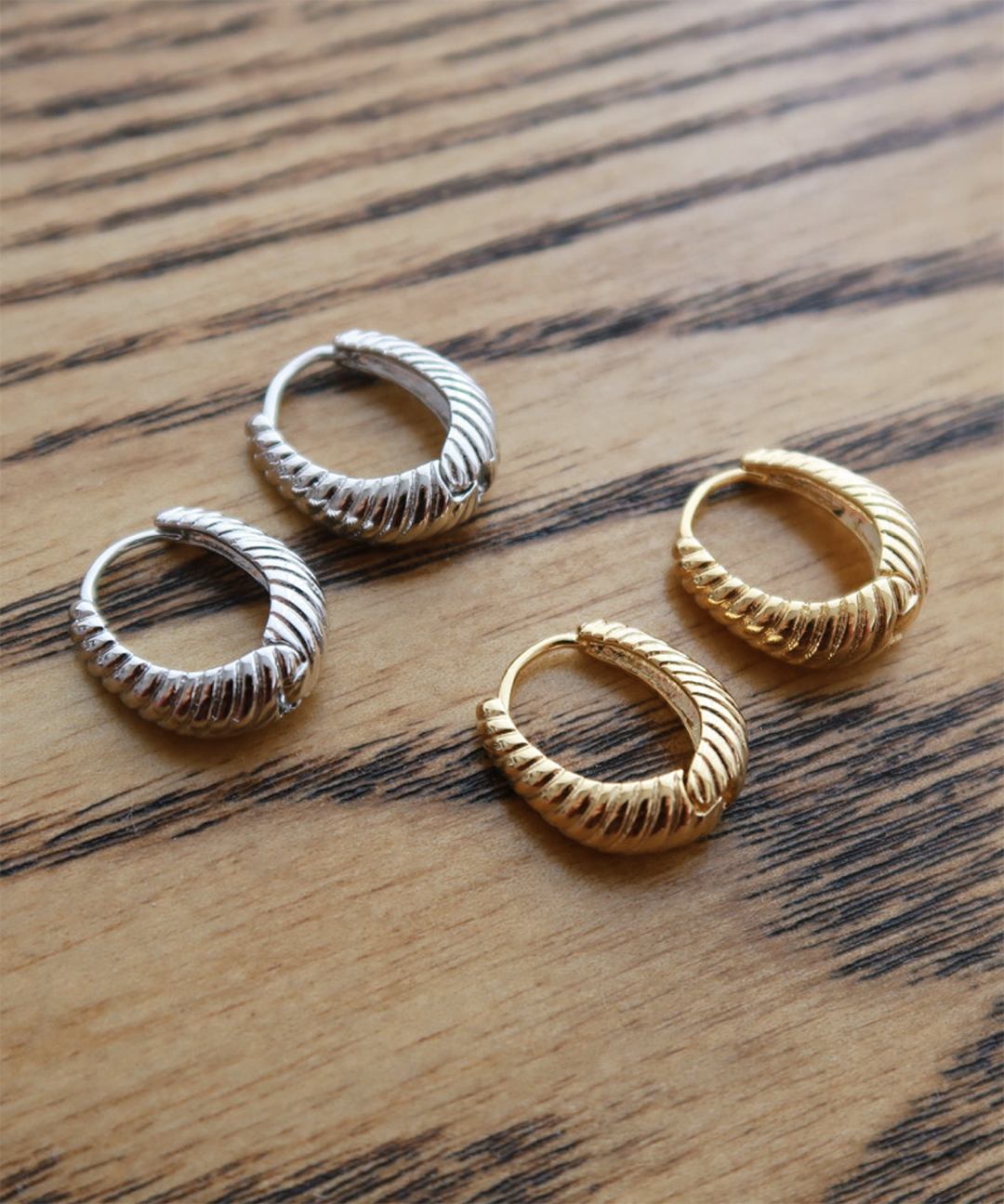 사선 볼륨 원터치 링 귀걸이 (2colors)