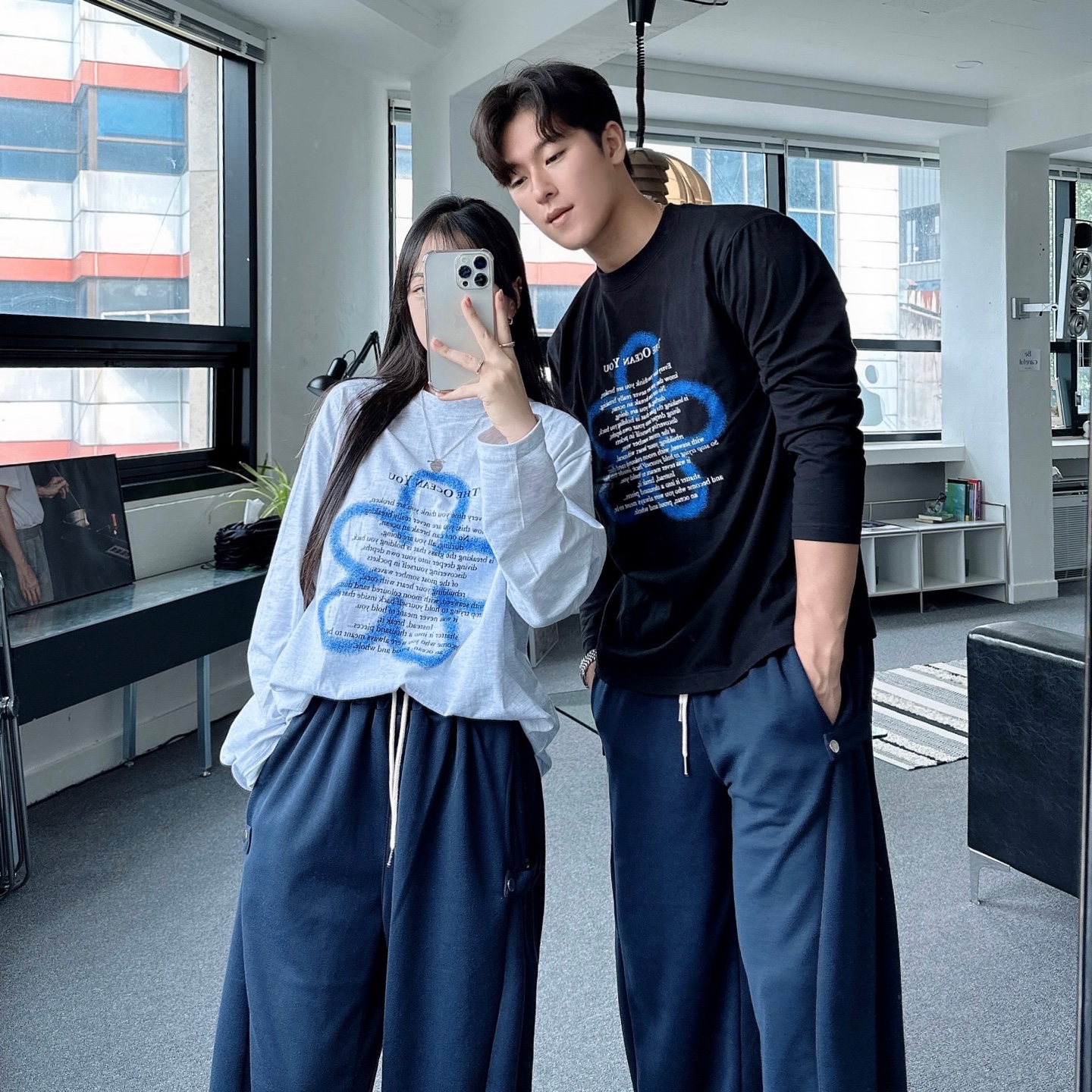 세트가능/ 남녀공용 오버핏 긴팔 커플티 사이드 스냅 벌룬 팬츠 와이드 스트링 조거 봄 가을 커플룩 루즈핏 티셔츠 꾸안꾸 트레이닝 세트 시밀러룩 빅사이즈 스트릿 힙 클로버 박스티