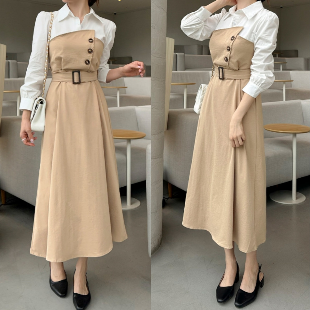트렌치 원피스 올드머니룩 상견례옷차림 9월 하객룩 결혼식 예복 피로연 오피스 벨트 셔츠