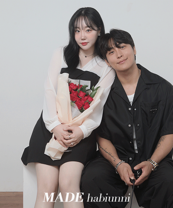MADE #12579 [2기장] 촤르르~ 하객룩 브이넥 쉬폰 시스루 배색 긴팔 플레어 원피스 : 아이 1color