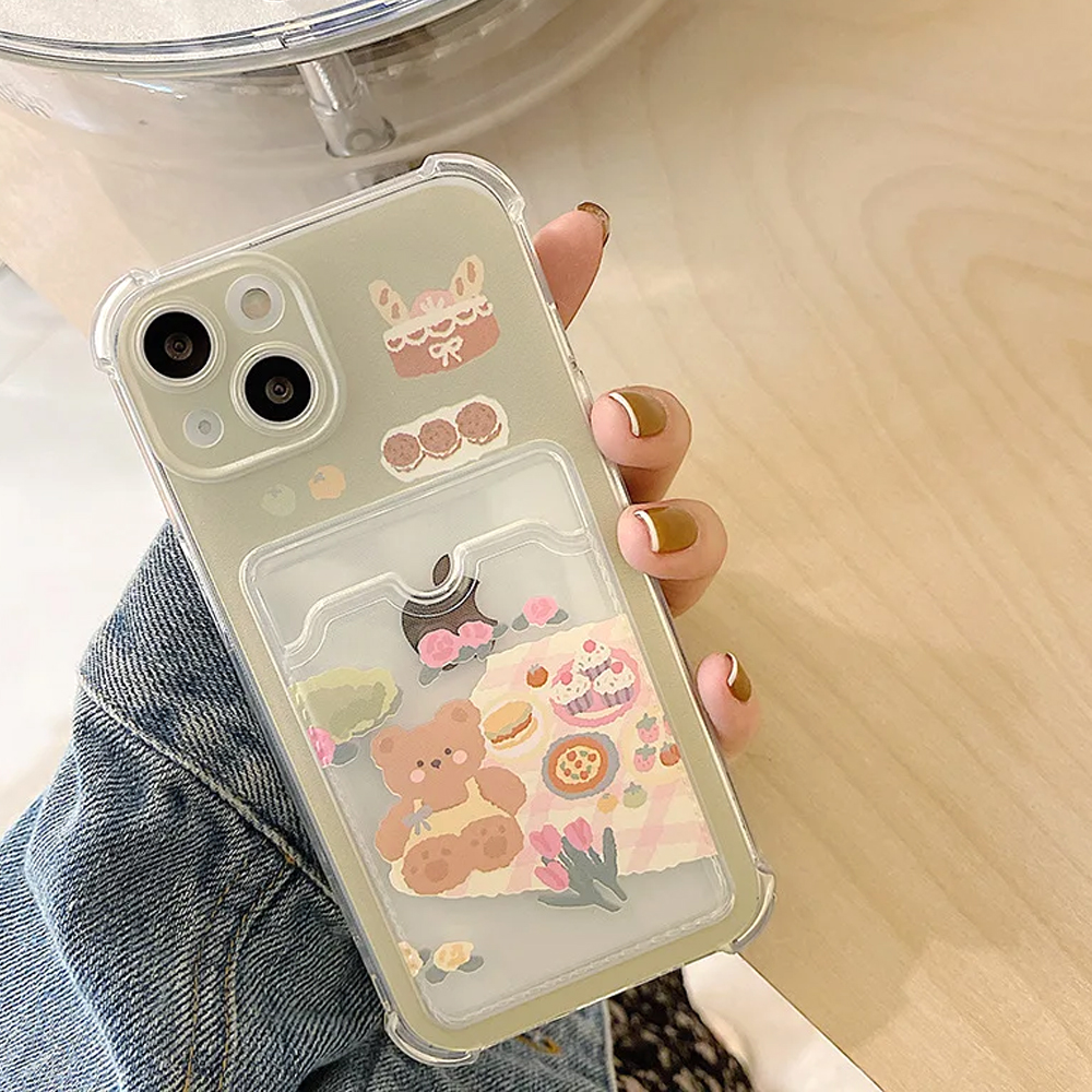 당일발송🚀귀여운 곰돌이 투명 카드 범퍼 아이폰 케이스 아이폰13 미니 14 15 16 프로 맥스 플러스
