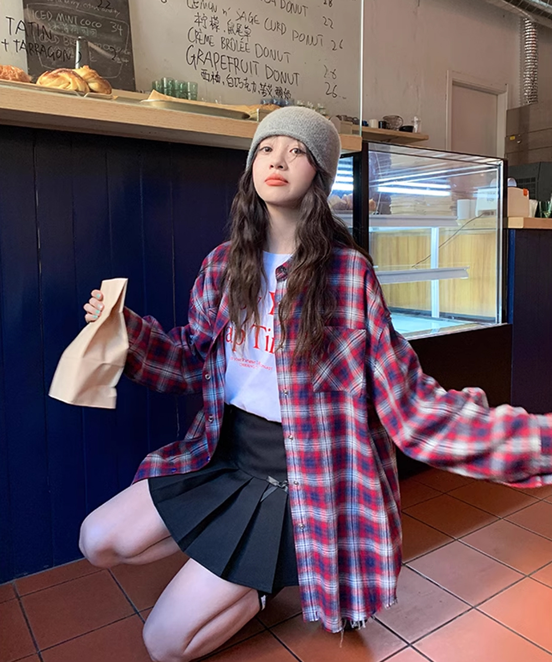 [💗브랜드생산라인 /컷팅 포인트👍선명한 컬러감/캠퍼스룩/출근룩🚛무배]베리 빈티지 컷팅 체크 셔츠 s160950