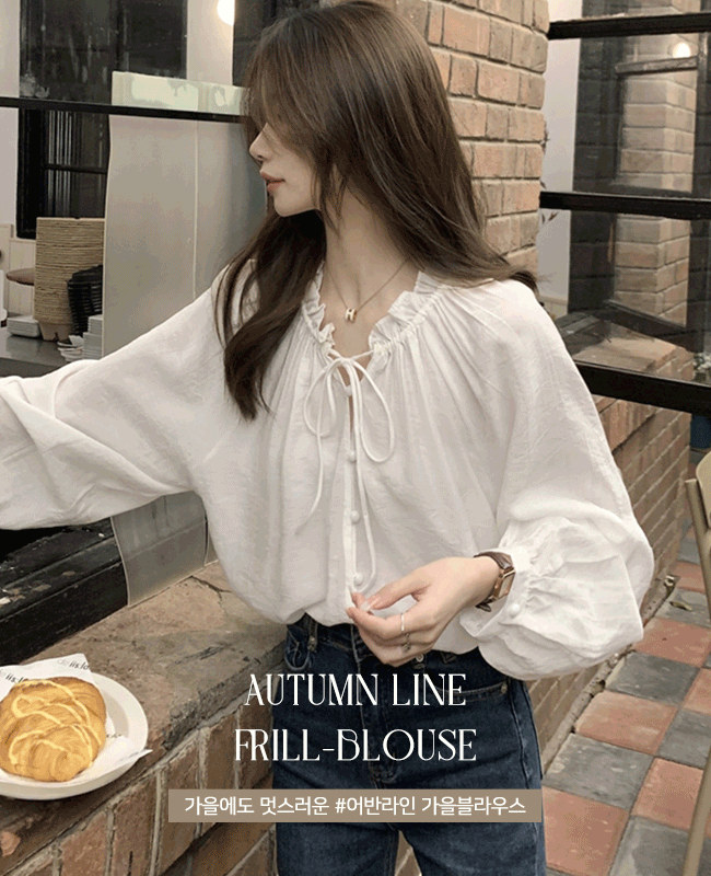 셔링 콩단추 리본 긴팔 블라우스 - 2color