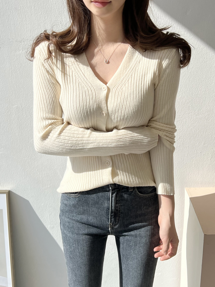[무배]아베뉴 부드러운 브이넥 골지 가디건 3color