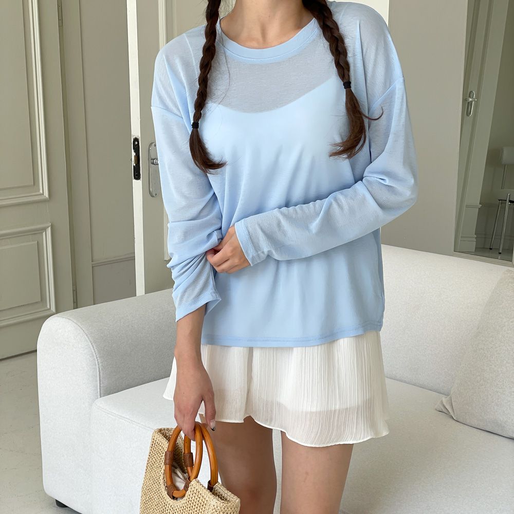 여름 여름긴팔티 긴팔 간절기룩 비치 시스루 스판 간절기 바캉스룩 티셔츠