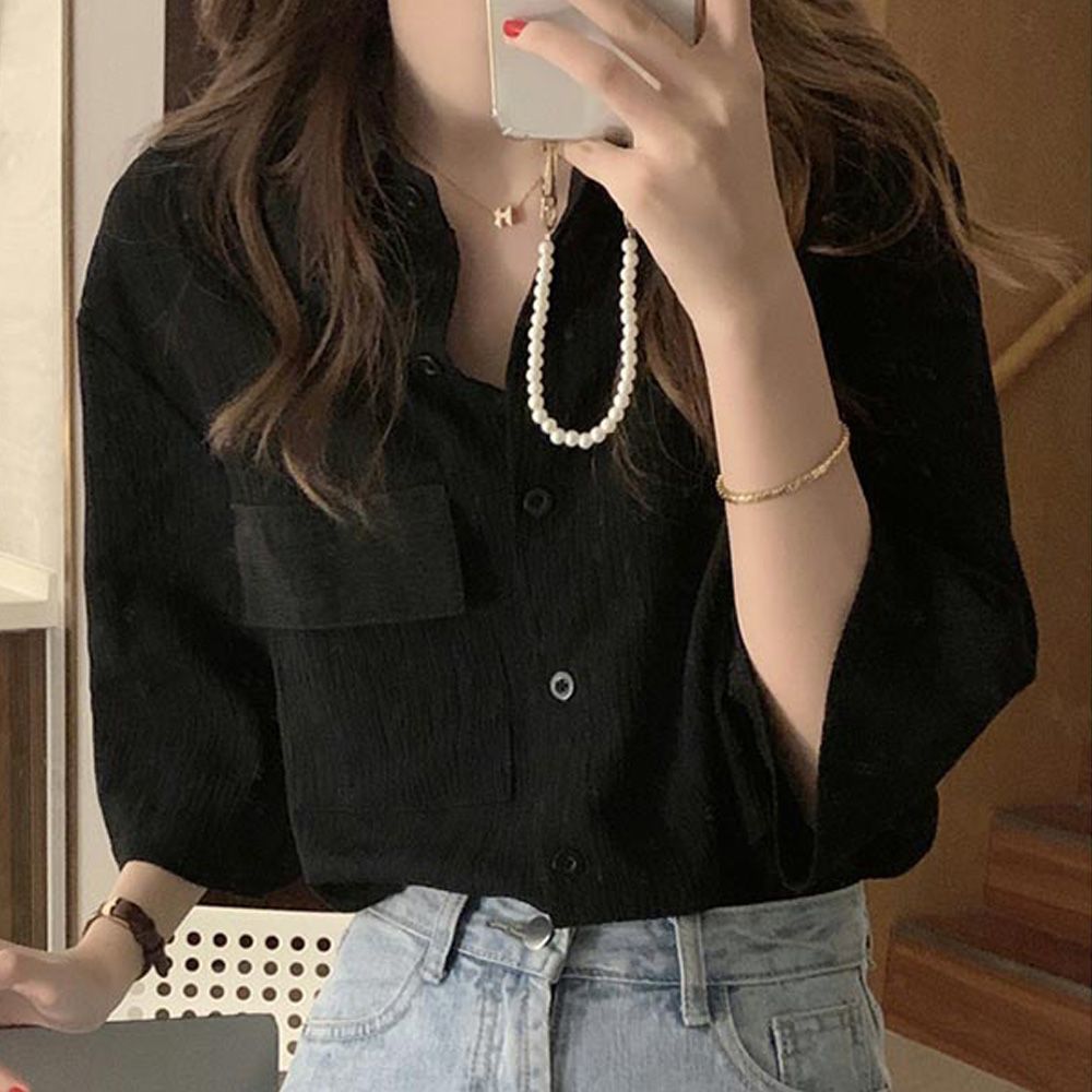 여자 편한오피스룩 카라 회사복장 베이직 셔츠 회사 출근룩 검정색 오피스룩
