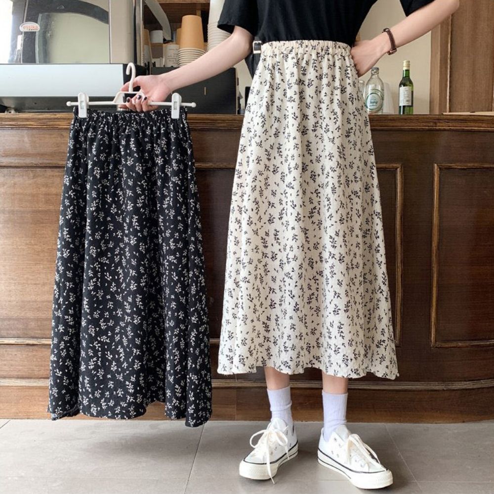 여성 여자치마 봄 치마 플라워패턴 여름 여자 꽃무늬 롱스커트 밴딩