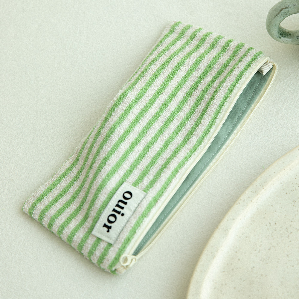 위올 플랫 펜슬케이스 - 테리 스트라이프 그린 (topside zipper)