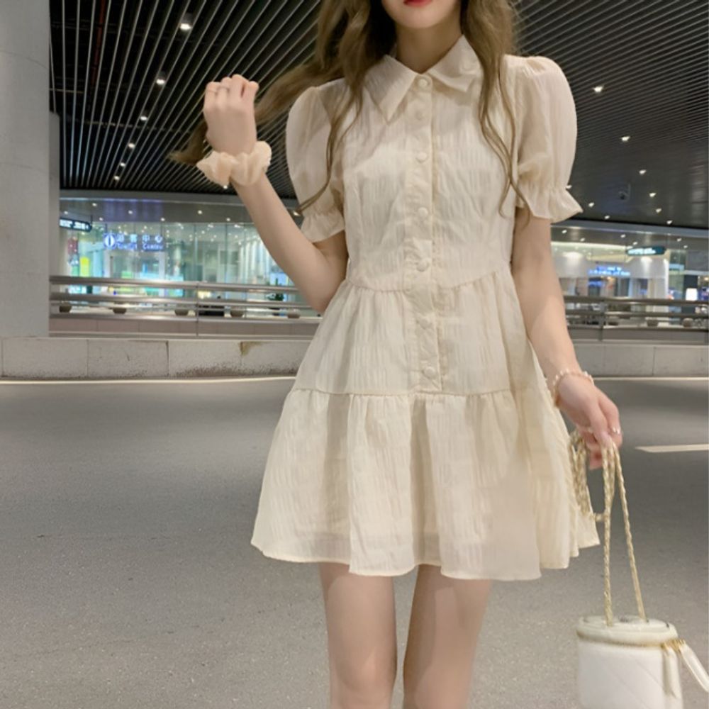 퍼프소매 가을원피스 원피스 여름원피스 여름 카라넥 미니