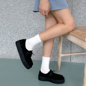 스웨이드 발편한 데저트 통굽 레이스업 여자 로퍼