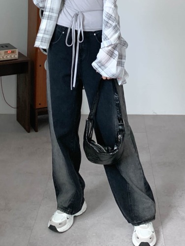 [걸크러쉬🖤] 데스 블랙 그레이 배색 흑청 데님 청바지 가을 가을신상 가을바지 가을팬츠 y2k 유니크 스트릿 롱팬츠 와이드팬츠