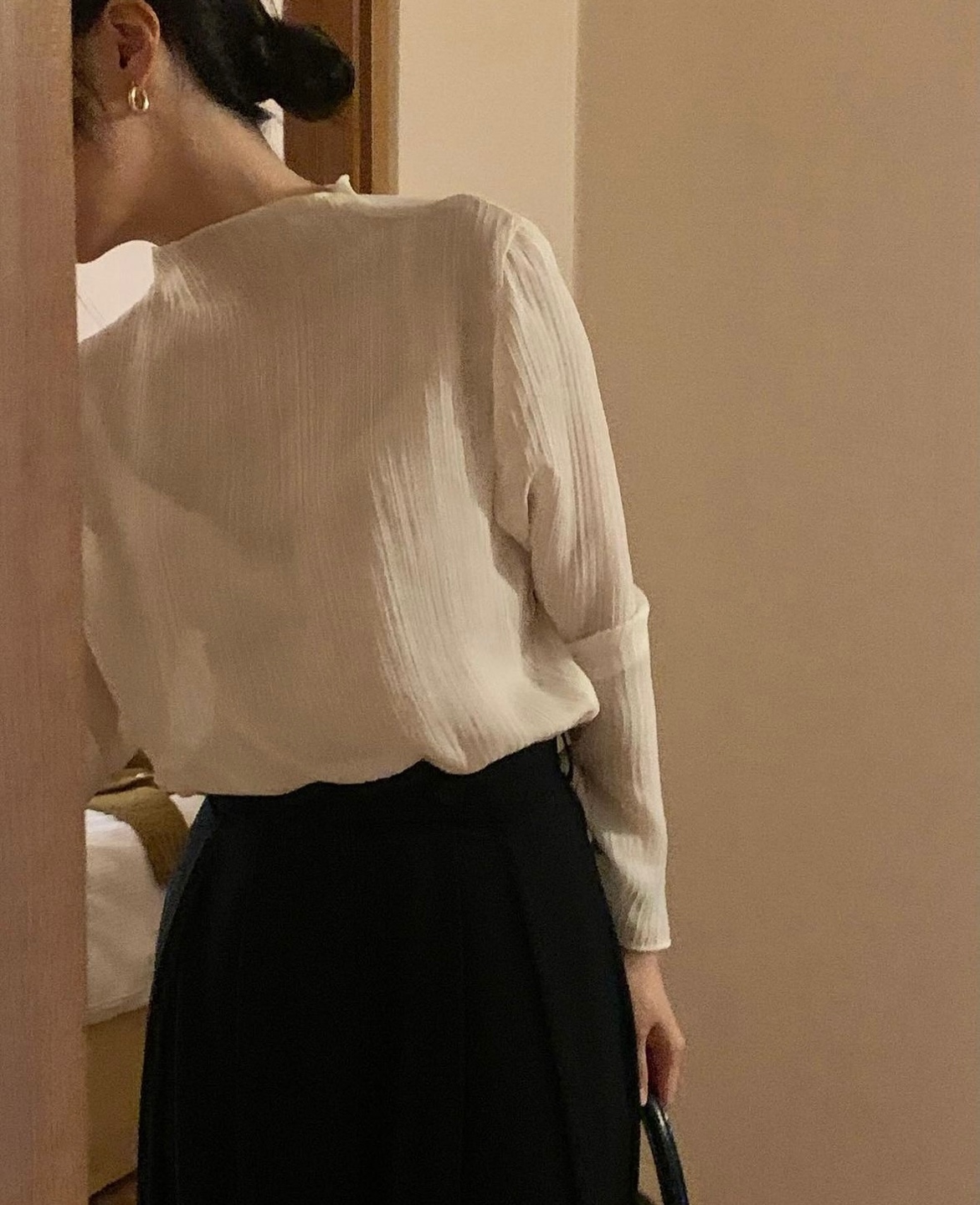 가을 하객룩 레이어드 시어 시스루 반목 긴팔 블라우스, 2col