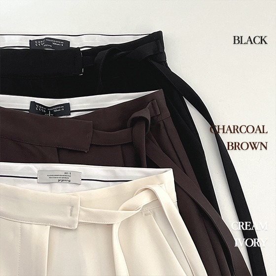 [오늘출발] 허리 스트랩 와이드 슬랙스 (와이드팬츠,롱와이드,핀턱슬랙스,브라운팬츠,사계절,하객룩,출근룩,겨울바지)