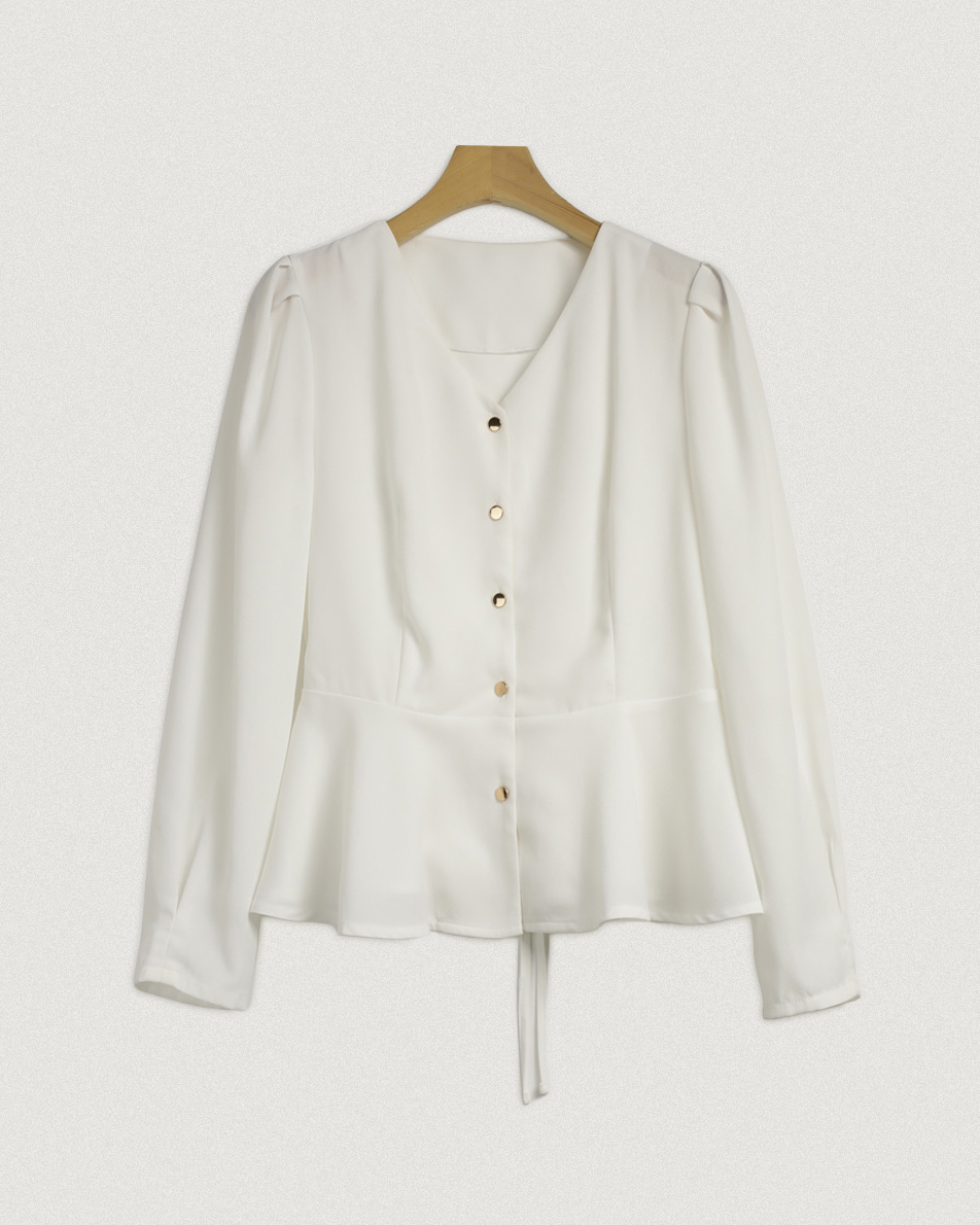 [하객룩블라우스] #MADE [tbs0395] 로인 스트랩 브이넥 블라우스(퍼프블라우스,브이넥블라우스,스트랩블라우스,하객룩블라우스,하객룩)
