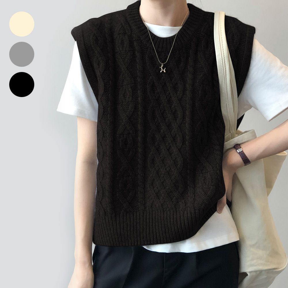 여자 여성니트베스트 기본 귀여운조끼 예쁜 꽈배기 신축성 라운드 무늬 베스트