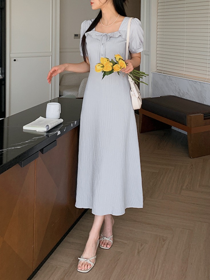 [44-120] 이레츠닌 스퀘어넥 리본 프릴 롱 원피스( 여름-데일리룩-데이트룩-캐주얼룩-캠퍼스룩-하객룩-격식룩-출근룩-빅사이즈-120사이즈-자체제작-시원한-가벼운-얇은-통통녀-여름하객룩 )
