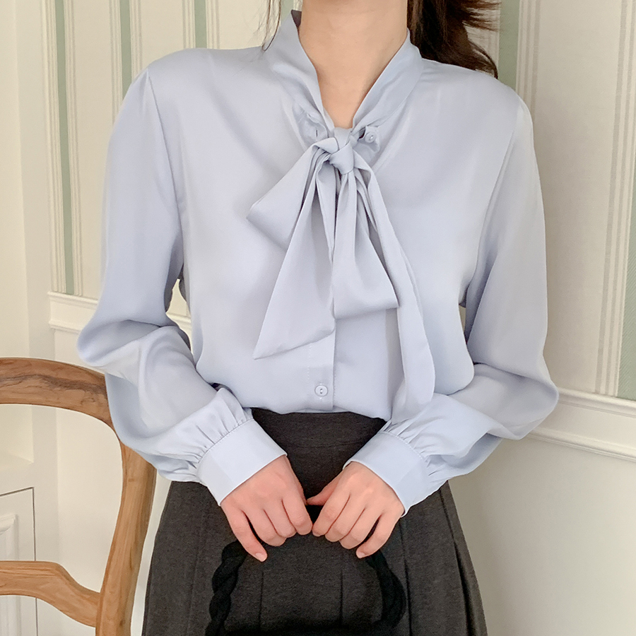 [샤틴소재💍리본타이] [당일발송] 리본데이트 여리핏 블라우스 가을 간절기 가을신상 가을코디 봄 하객룩 리본블라우스 타이블라우스 쉬폰 결혼식 레이어드 오피스룩 쉬폰블라우스
