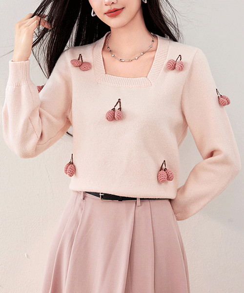 베리베리 핑크 스토리베리 스퀘어넥 니트