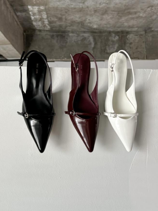신상🖤타이 랩 버클 스트랩 애나멜 슬링백힐 미들힐샌들 뾰족코 가을신상 버건디구두 4cm(3C)