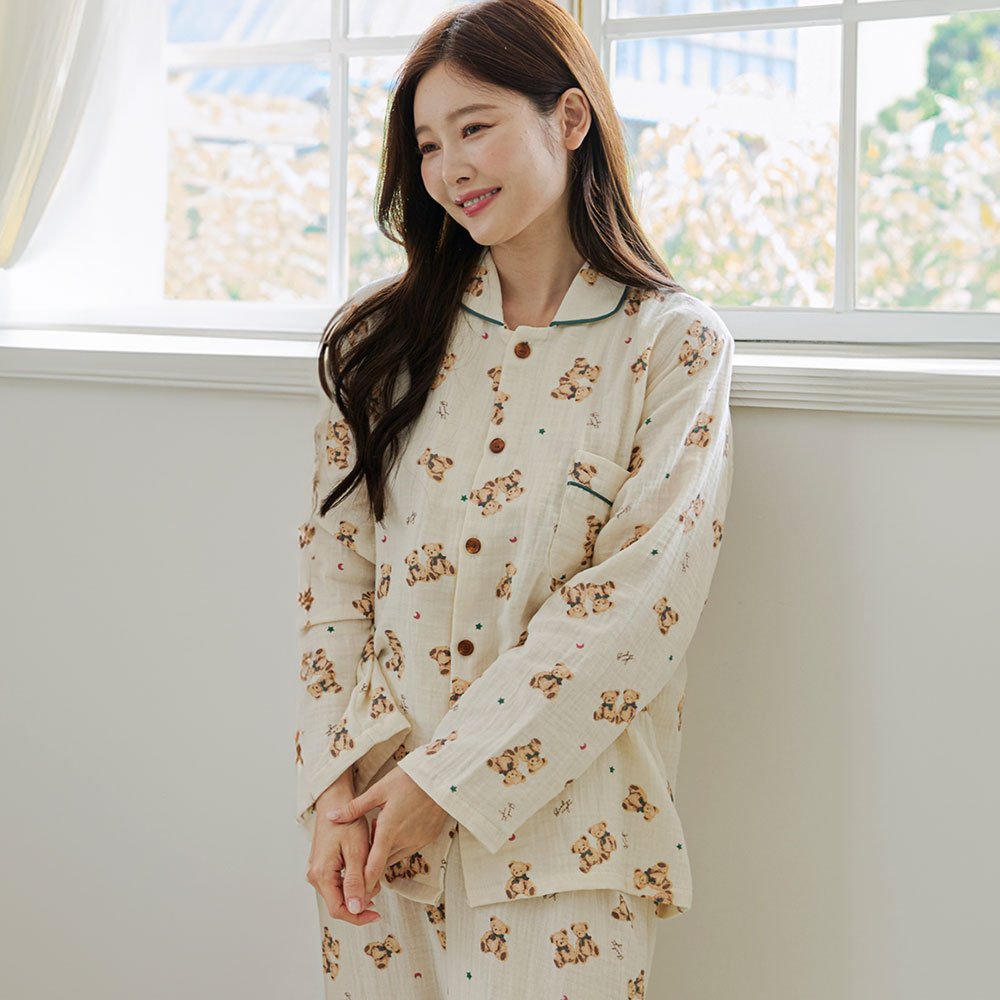 여자잠옷브랜드 귀여운 곰돌이 순면 긴소매 여성빅사이즈파자마 선물추천 홈웨어세트