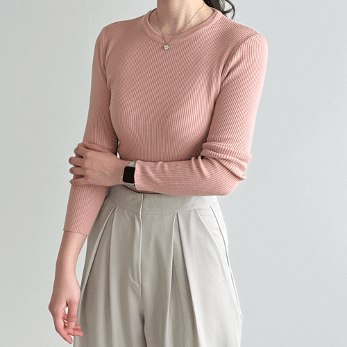 소프트 슬림 잔골 라운드넥 기본 니트 긴팔 티셔츠 이너티셔츠 골지티 5color