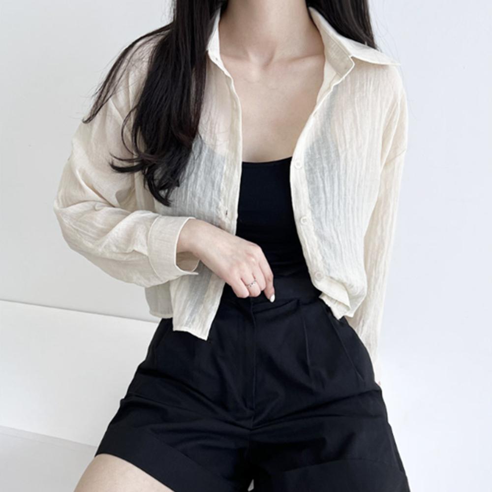 여성 여름 베이지 시스루 셔츠 휴양지 휴가 오피스룩