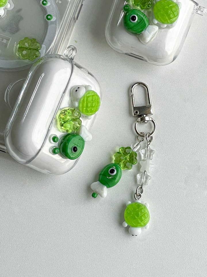 행운 거북이 초록 물고기 비즈 레진 키링 핸드폰키링 에어팟키링