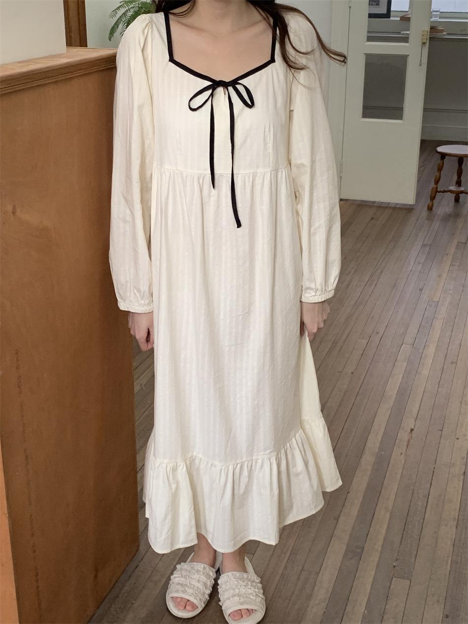 (포포원피스잠옷) 임산부잠옷 빅사이즈잠옷 여성파자마 트임 리본 긴팔 가을 편한 면