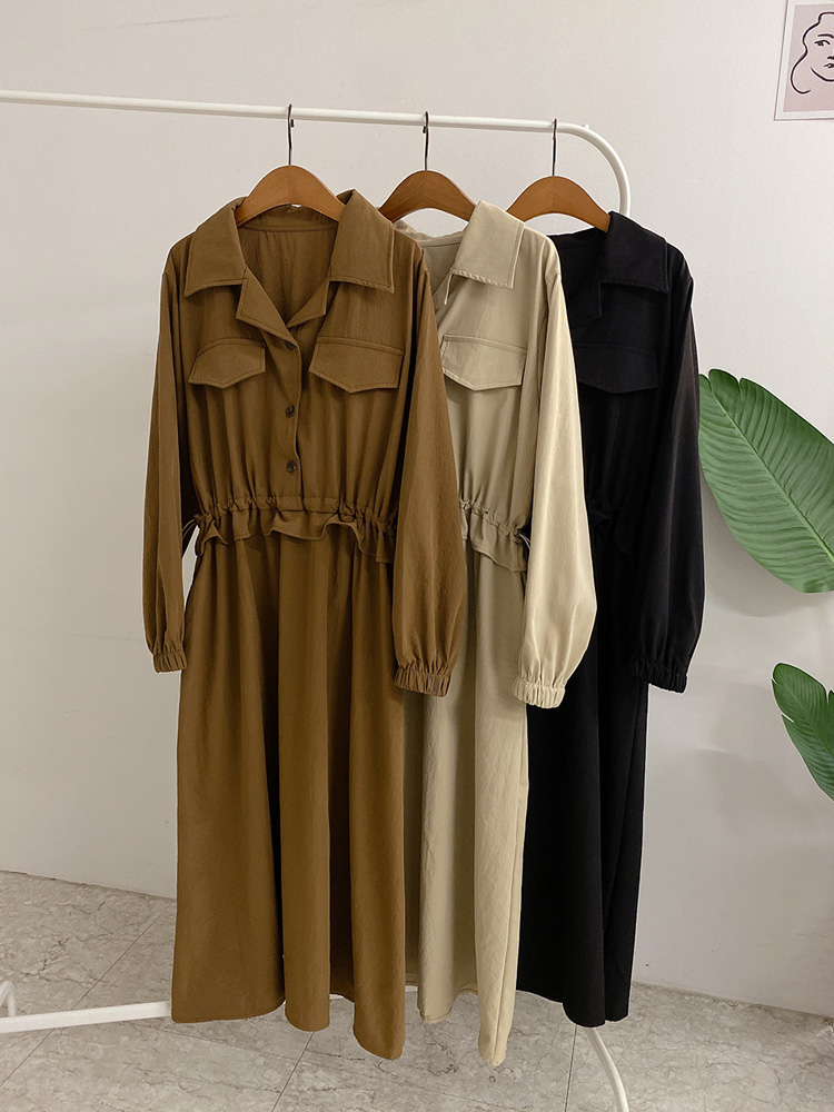 웬츠 스트링 페이크 포켓 카라 롱 원피스(3color)