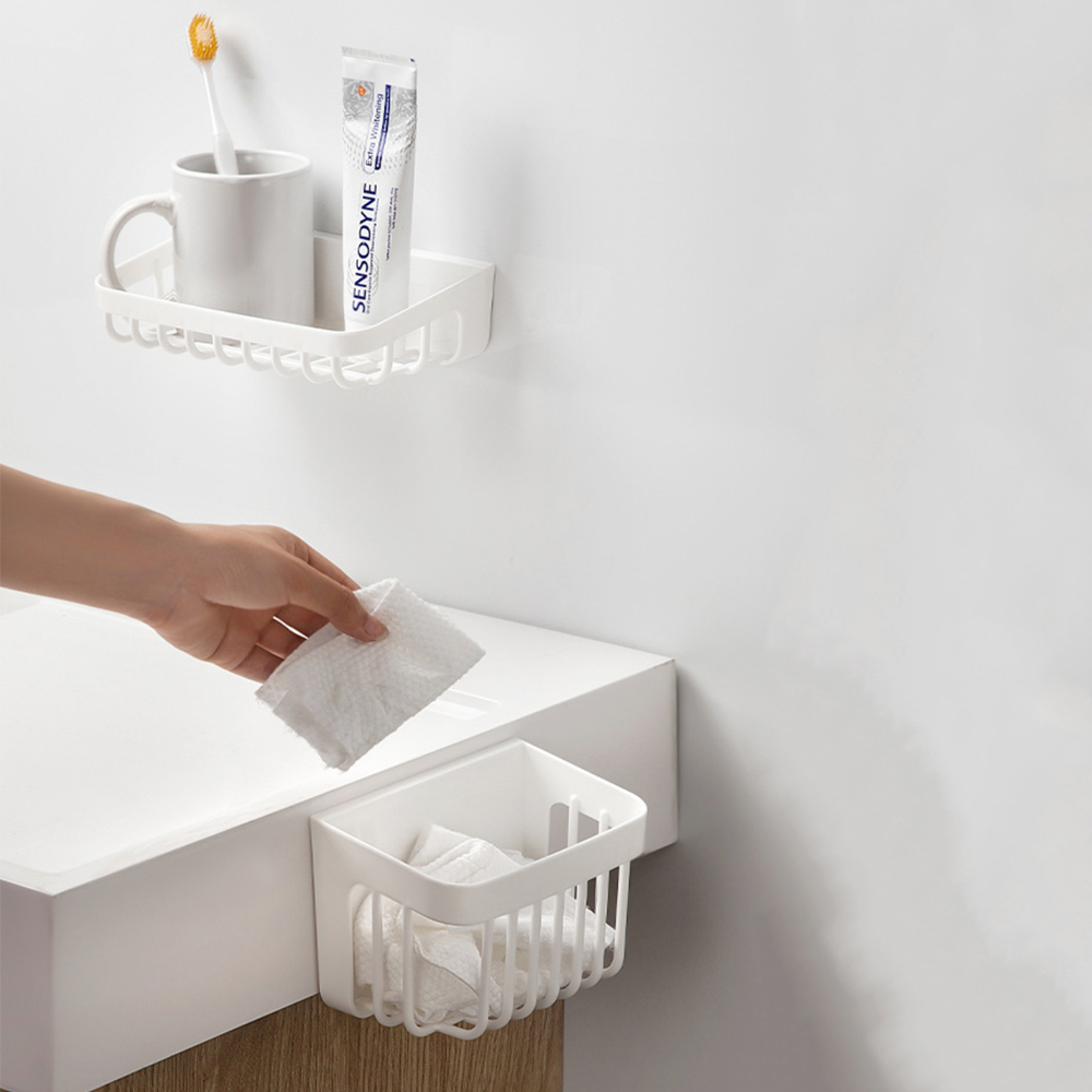 무타공 미니 포켓 욕실 수납 바구니 선반 부착식 물빠짐 바스켓 2size