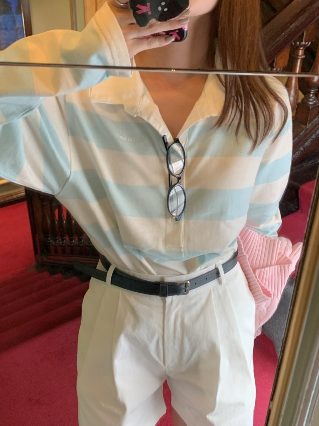 300장판매돌파! 💕URBANE MADE💕 오브 루즈핏 스트라이프 단가라 긴팔 카라 럭비 티셔츠 ✨ /여행룩/데일리룩(당일)