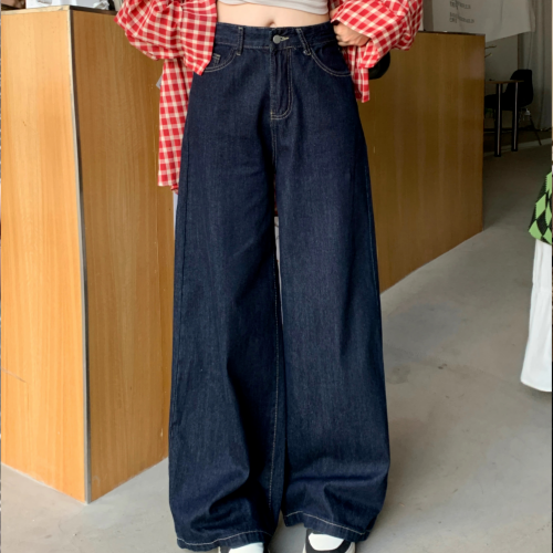 빅사이즈 하이웨스트 생지 데님팬츠 와이드 통바지 일자바지 통통이 하체커버 청바지 진청 스티치 데일리 캠퍼스 교회 데이트 가을 신상 스트레이트데님