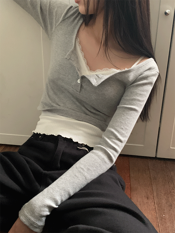 [인기🔥/필수소장추천] 시에르 레이어드 버튼 골지 긴팔 티셔츠