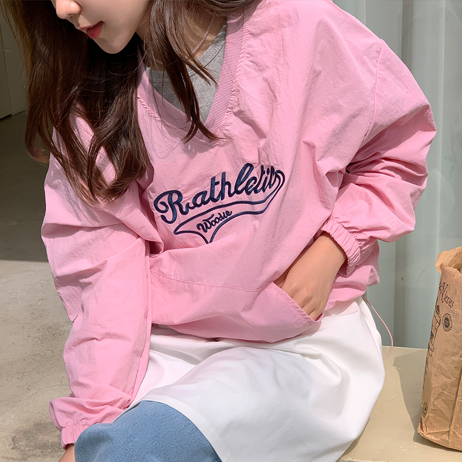 [투웨이💙밑단스트링] 바스락 레터링 맨투맨 윈드브레이커 나일론 바람막이 봄맨투맨 봄신상 브이넥 오버핏 크롭맨투맨 오버핏 캐주얼맨투맨 브이넥맨투맨 봄긴팔