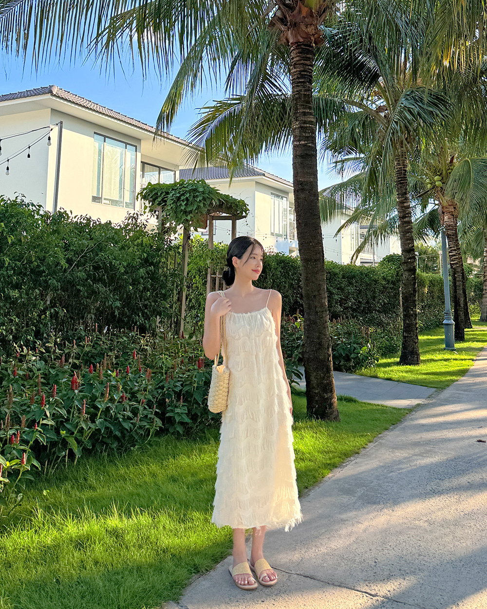[44-66] 하니 러플 스퀘어넥 나시 원피스 [뷔스티에/수슬/루즈핏/끈/민소매]