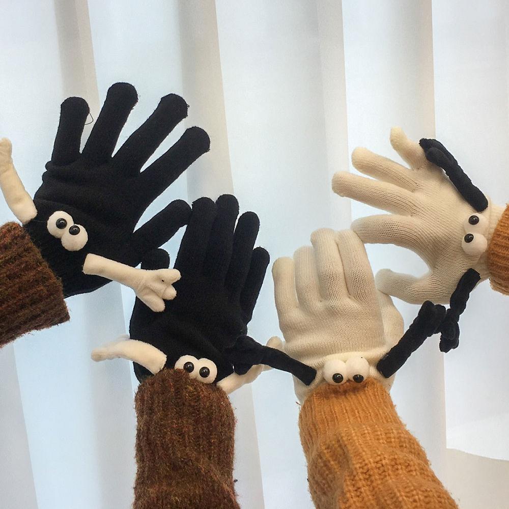 커플 손잡는 자석 캐릭터 손가락 장갑 2color [귀여운 따뜻한 겨울 핑거홀 터치 구멍 뚫린 오픈 인싸 우정 템 특이한 선물]