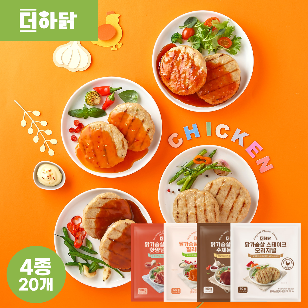 [런칭이벤트] 더하닭 닭가슴살 스테이크 4종 혼합 20개 (각 5입)
