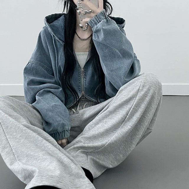 [투웨이/아방핏🖤]후드워싱데님밴딩벌룬핏투웨이자켓점퍼(2color)