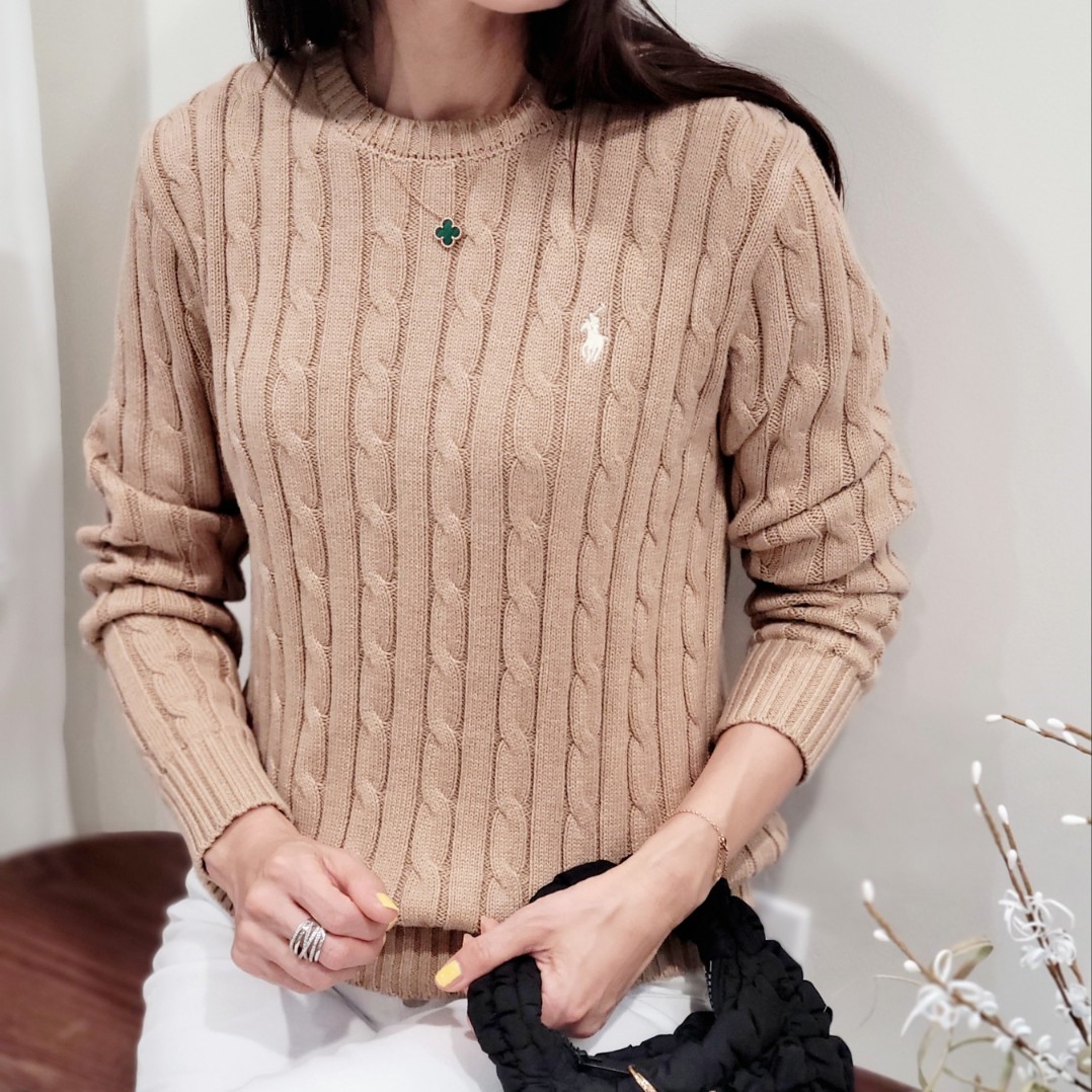 폴로 랄프로렌 여성 크루넥 라운드넥 코튼 케이블 꽈배기 니트