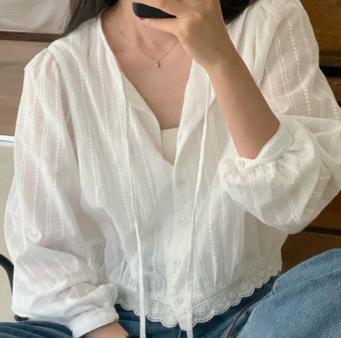 런던레이스 브니레이스블라우스 타이블라우스 가을 프릴블라우스