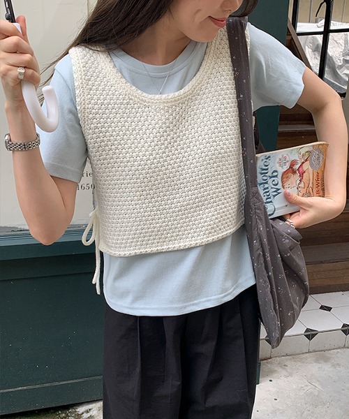 [당일출발] 불렛 리본 크롭 니트 조끼 - 5 Color (출근룩/레이어드/베스트)